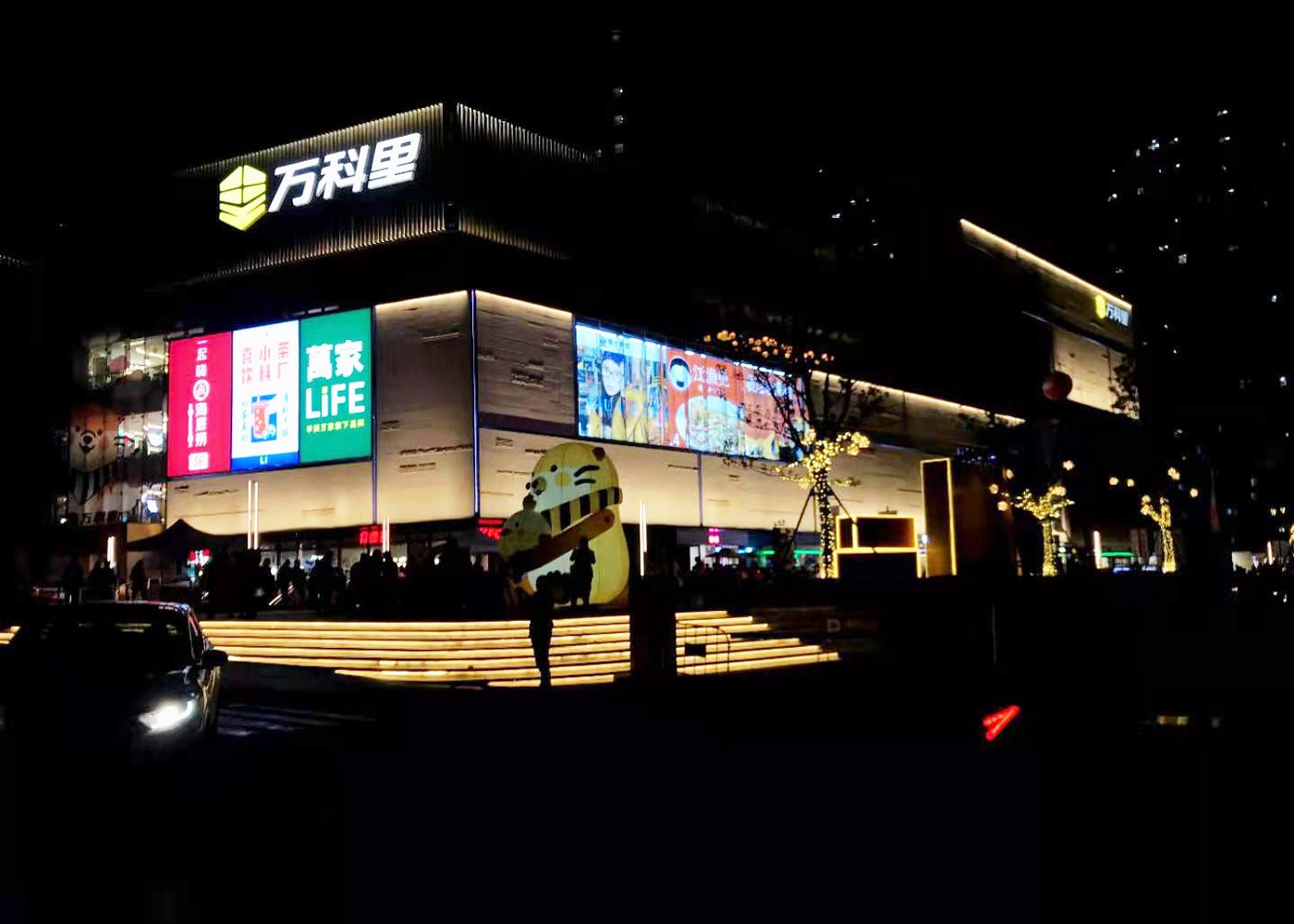 廣告燈箱的對象是動態(tài)中的行人,行人通過可視的廣告形象來接受信息,設(shè)計師通過對整個項目的考察,距離、視角、環(huán)境三個關(guān)鍵因素的考慮,凸顯出萬科里的獨特性。